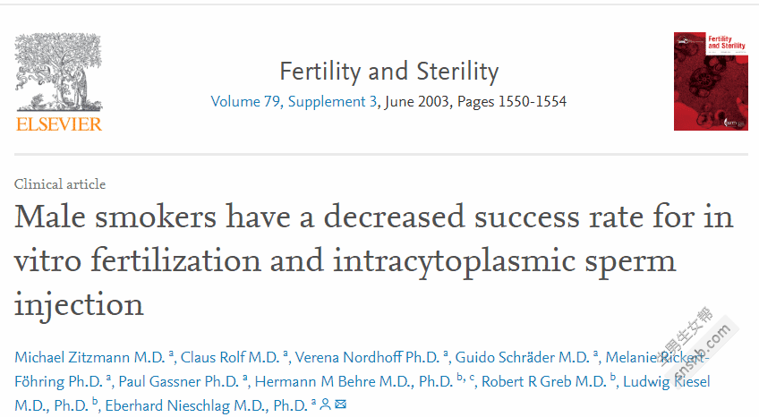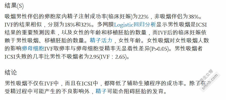 ![]() 图|science direct男性吸烟者体外受精和胞质内精子注射成功率下降