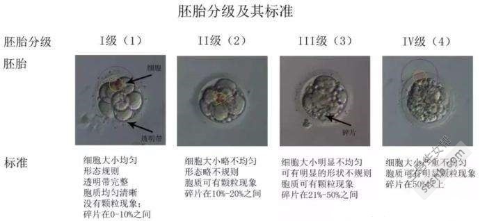 对于不能自然生育 的朋友们,医生会建议你做试管婴儿,本就生孕十分不易,试管婴儿的路程也是十分艰辛的,而且花费极大,因为想做试管婴儿的朋友们,也一定要注意哦! 在辅助生殖技术领域,胚胎质量的优劣是决定试管婴儿移植能否成功的关键因素之一。胚胎不能适应体外培养环境可能是造成大量胞浆碎片的原因之一! 胚胎碎片是如何形成的: 碎片的生成是细胞凋亡的征象,当胚胎受到自身原因或体外环境压力时,会产生DNA修复机制,排出对机体有害的细胞成分,导致碎片的生成。所以碎片越多的胚胎,生长潜力可能越差,这成了判断胚胎好差的一个重要标志。 胚胎碎片率高对试管婴儿的影响? 直接的影响,就是影响胚胎的质量,胚胎碎片率越高,胚胎质量就越低。 在试管婴儿领域,对胚胎碎片的划分标准及鉴定胚胎是否可用的标准如下 一级胚胎:碎片率为0~5%,理想移植对象优选; 二级胚胎:碎片率在6%~20%之间,不影响移植; 三级胚胎:碎片率达21%~50%,用于移植的情况极少; 四级胚胎:碎片率>50%,属于淘汰范畴,不用于移植。