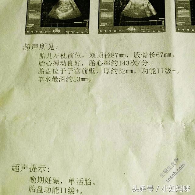 孕期症状:整个孕期都没有一次孕吐,行动自如,快生了还身体轻盈;孕后期胎心基本都是140多;孕中期皮肤变黑变丑,孕后期又变白;肚子上长很多毛,腋下也变黑,乳头也变黑,乳头上长小颗粒,生了就消失了。