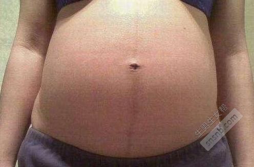4、侧面观察,腰部挺直为怀男肚型。
